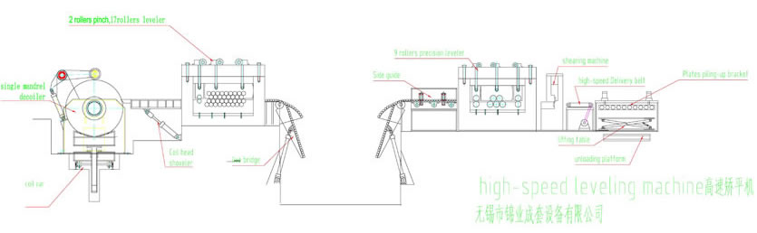 Esta máquina de corte transversaly longitudinal de velocida rápida es adecuada para el desenrollado y nivelado una banda de bobina y por su cizallamiento de la cinta nivelada plana a ciertas longitudes de las chapas con velocidad maxima de 100m/min. Se la conoce en general como máquina de banda de bobina CTL. Esta máquina es adecuada para el corte longitudinal de chapas finas o bobinas finas.